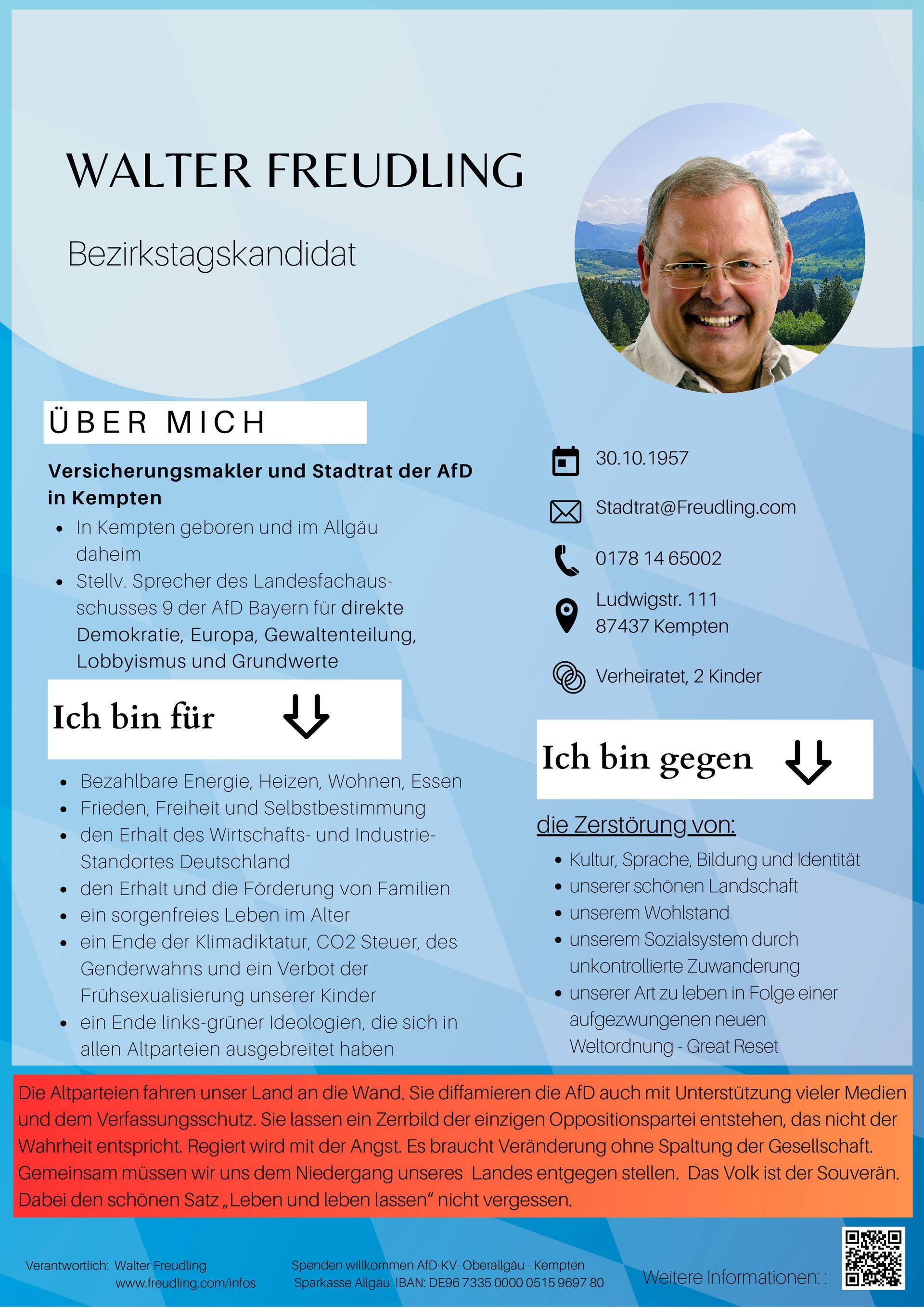 Weiter Information über den Bezirksstagskandidat Walter Freudling